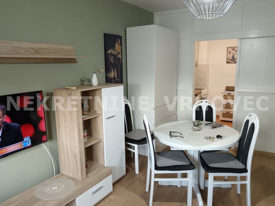 Iznajmljuje se jednosobni stan na 5. katu stambene zgrade. Sastoji se od ulaznog hodnika, kupaone, spavaće sobe i kuhinje sa dnevnim boravkom. Stan je namještene i opremljen osnovnim uređajima.