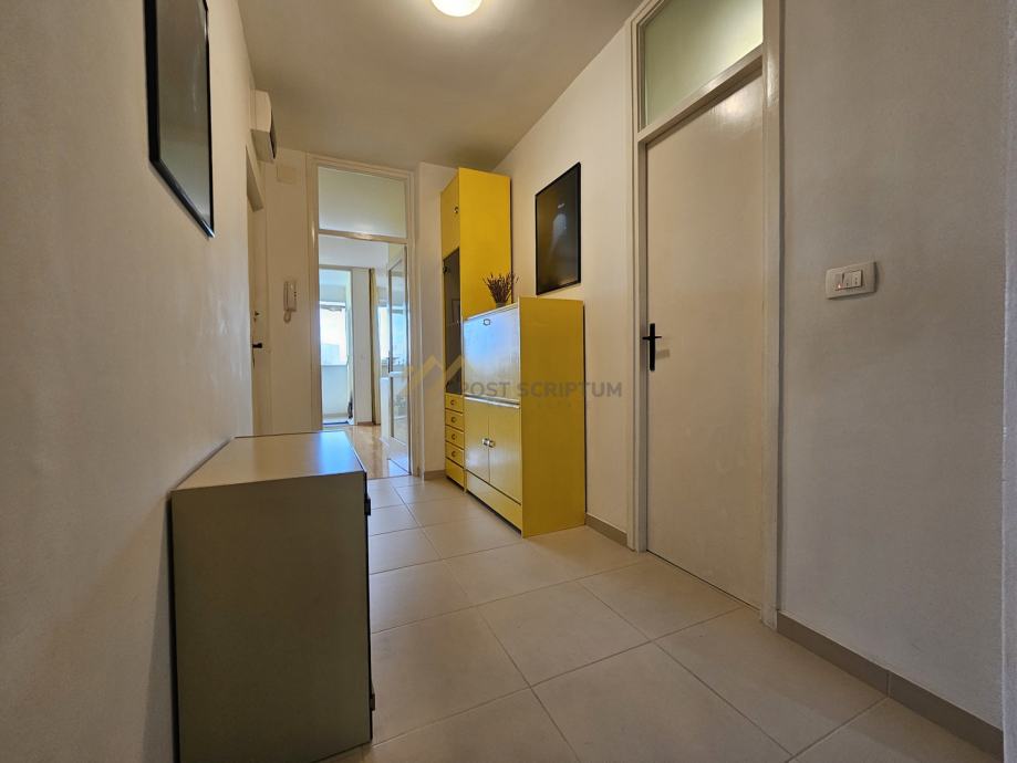 Južni dio kotara Lokve, komforan dvosoban stan od 65,70 m2 položen na petom katu stambene zgrade bez lifta (nije zadnji kat), orijentacije jug-sjever.