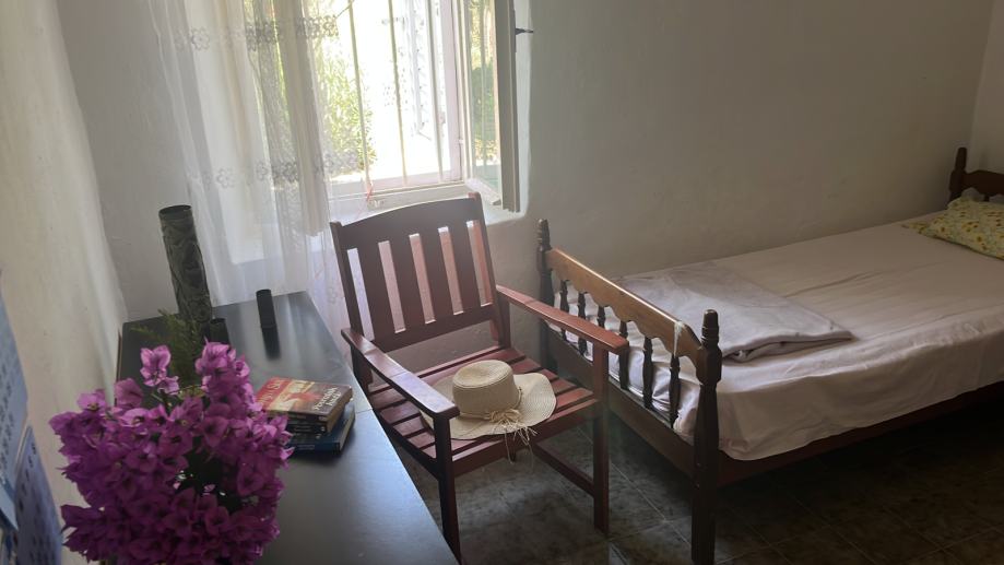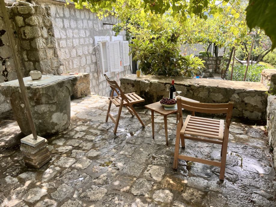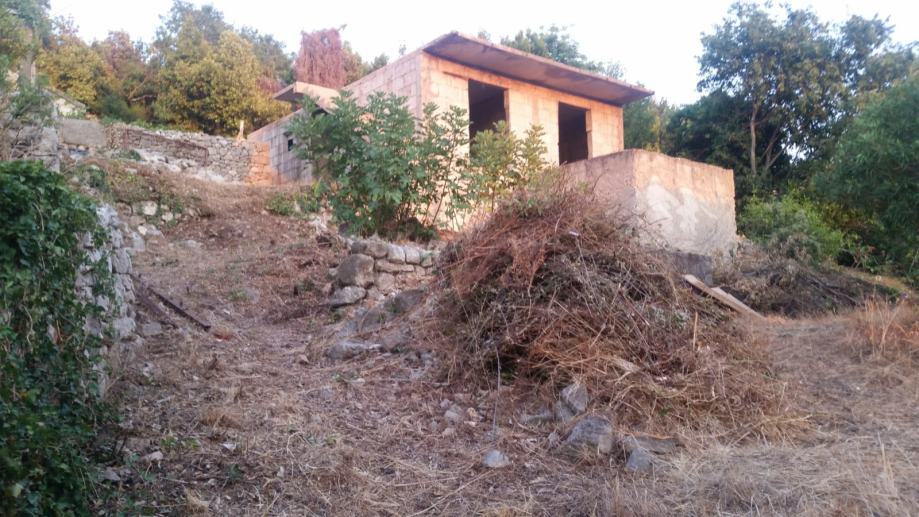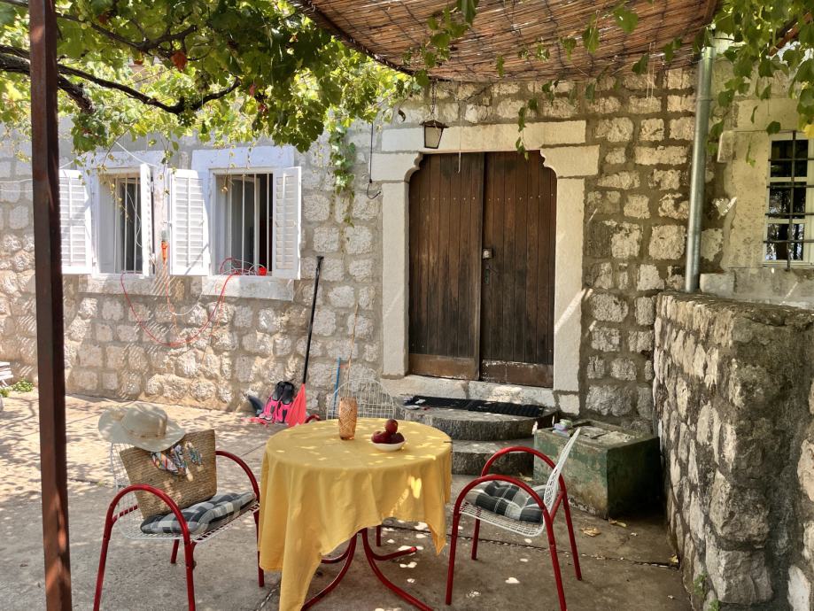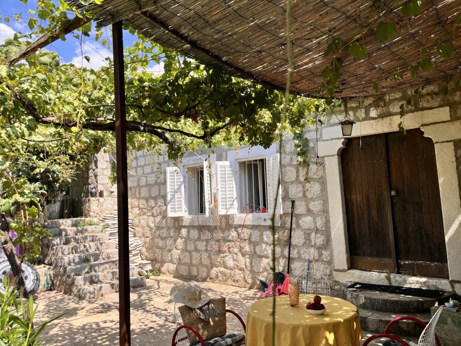 Kamena kuća (90 m²) – legalizirana, s urednim papirima, useljiva. Tradicionalna dalmatinska arhitektura, terasa s vinovom lozom i mediteranskim ugođajem.