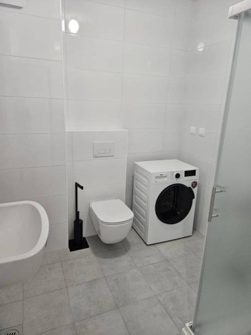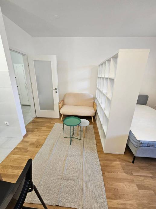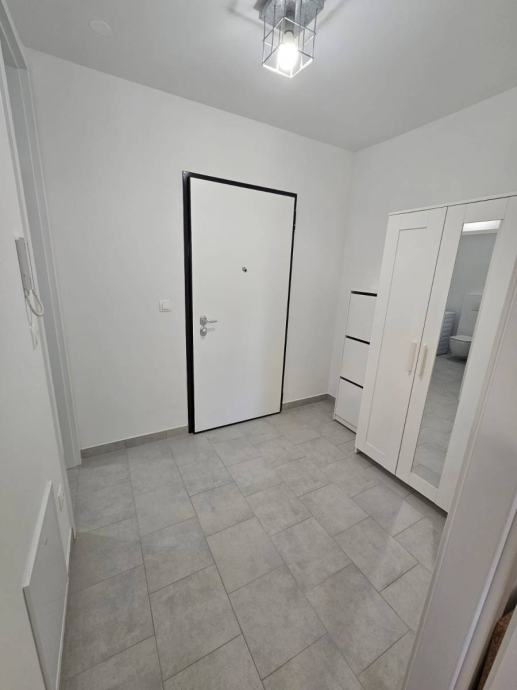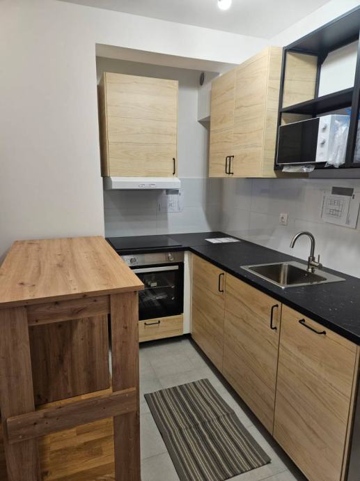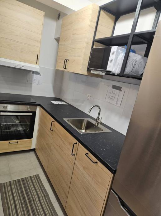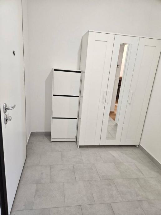 Nalazi se u visokom prizemlju (visina 1 kata). U potpunosti je opremljen i namješten kao sto je vidljivo na slikama te se prodaje kao "kljuc u ruke" zajedno sa svim namještajem ( krevet s madracem, ormari, dvosjed, barski stol sa stolicama, tv komoda, pregrada kojom je vizualno podijeljen spavaći dio) , uređajima i opremom koji su pod garancijom ( tv uređaj, perilica rublja, pećnica, ploča za kuhanje, napa, perilica posuđa).