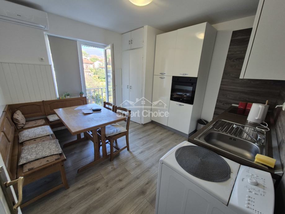 Lovran-prodajemo dvosoban stan u zgradi blizu mora s garažom. Stan je smješten na trećem katu zgrade. Sastoji se od hodnika, kuhinje s bagovaonicom, dnevnog boravka, kupaonice i dva balkona. Dnevni boravak je južno orijentiran i ima pogled na more. Svijetlo, sunčano, renovirano, prodaje se namješteno. U dvorištu zgrade pripada mu garaža. Prazno od ljudi i odmah useljivo. Uredna dokumentacija.
