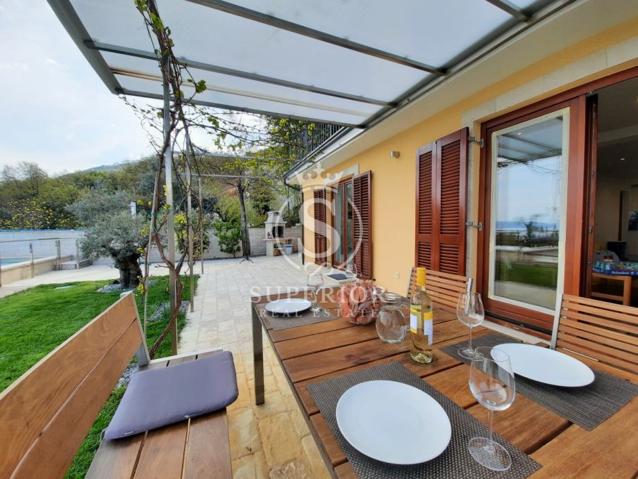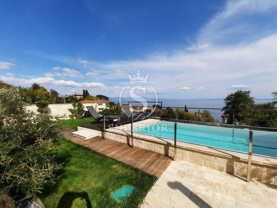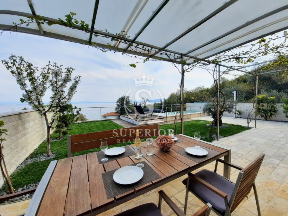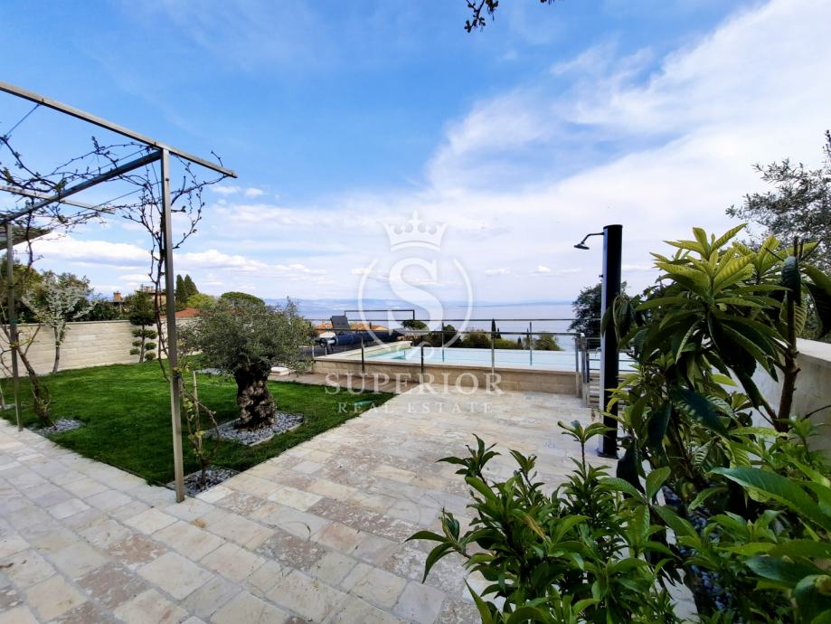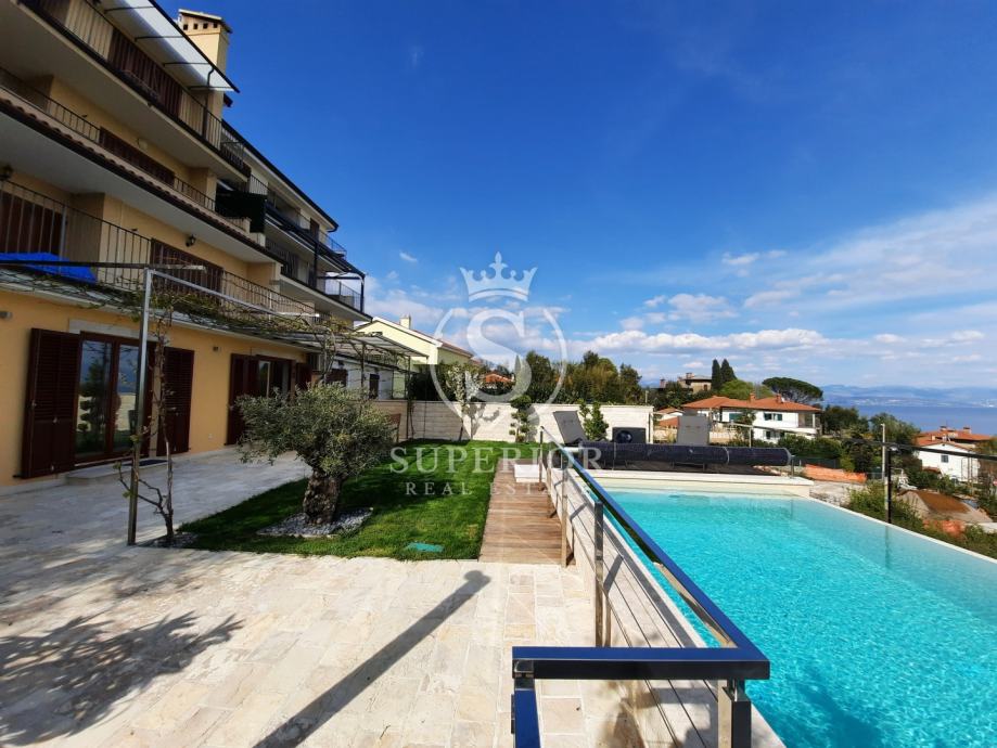 Lovran | Elegantan stan s bazenom i pogledom na more – 100 m od plaže, (iznajmljivanje)