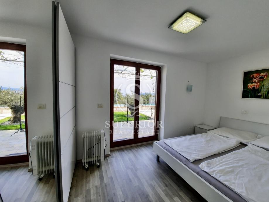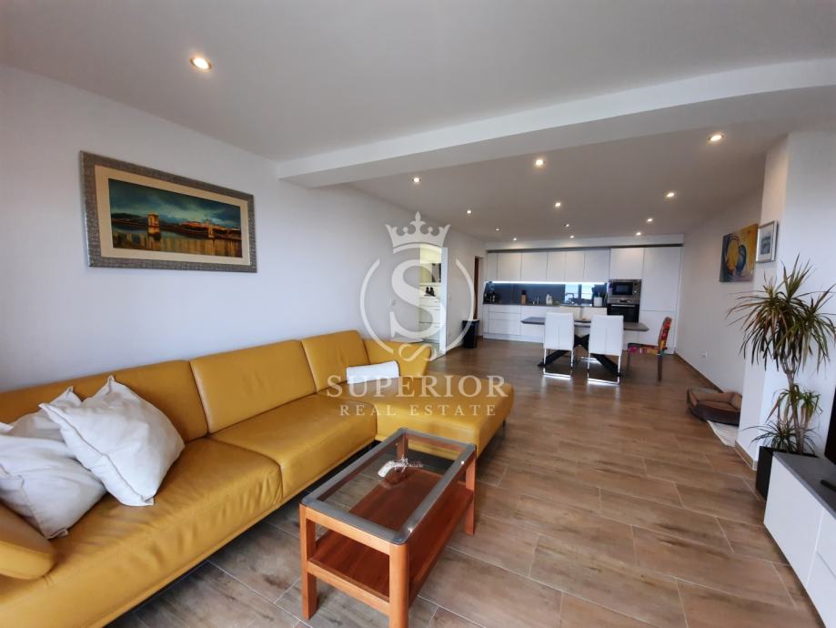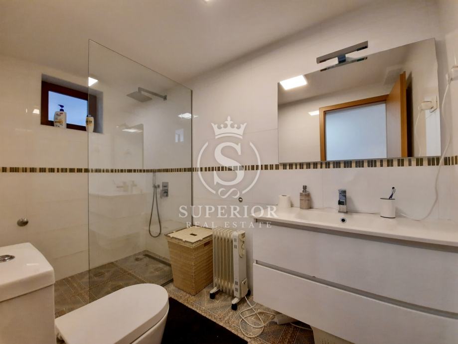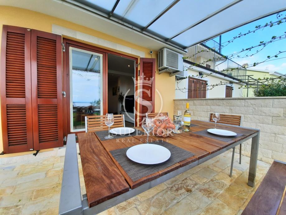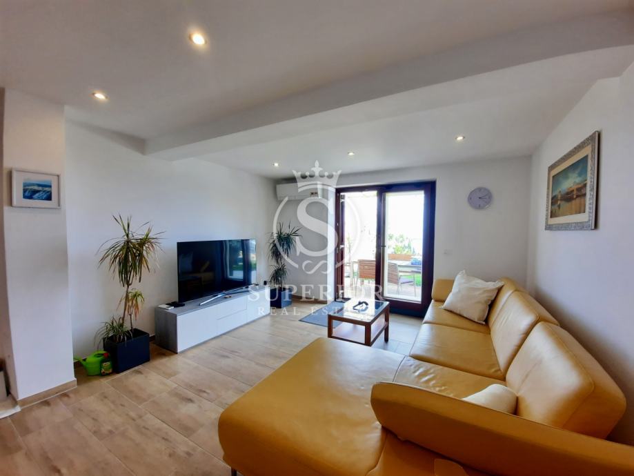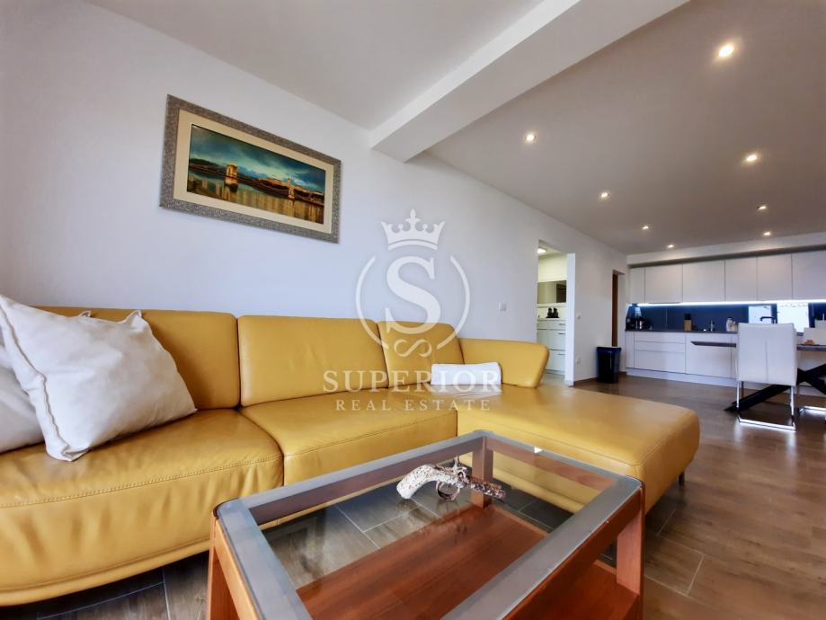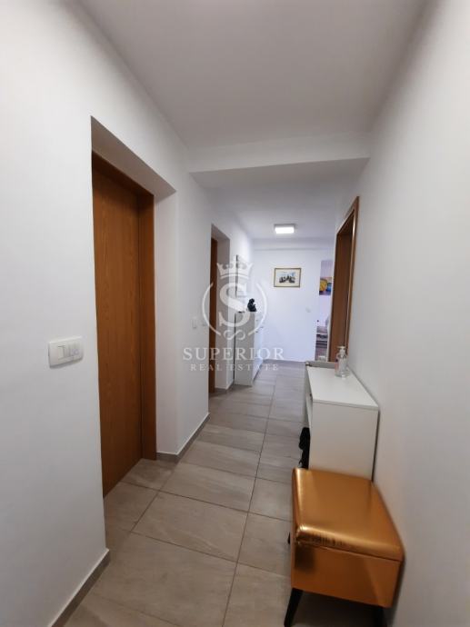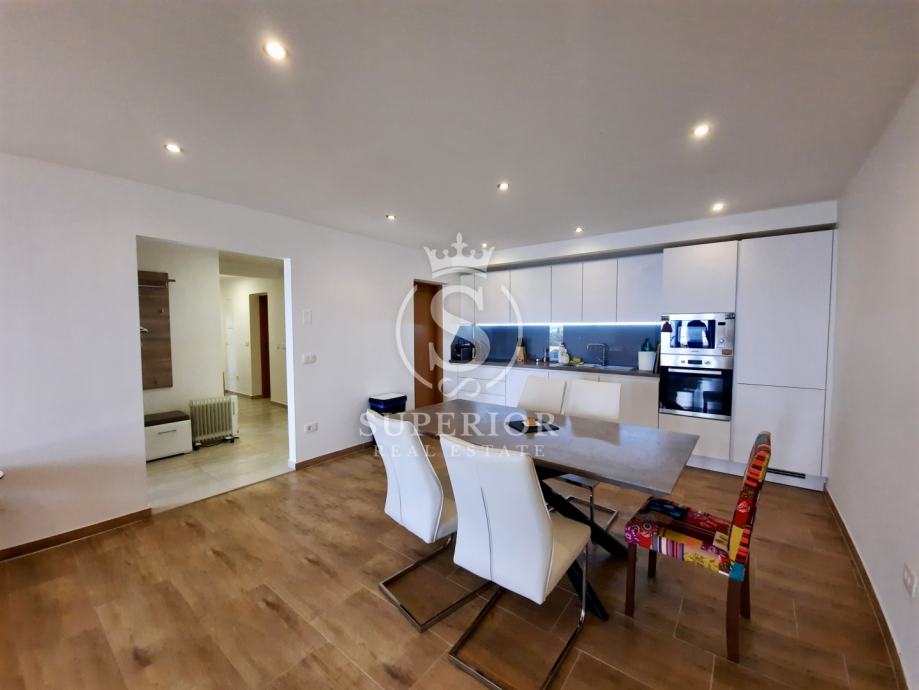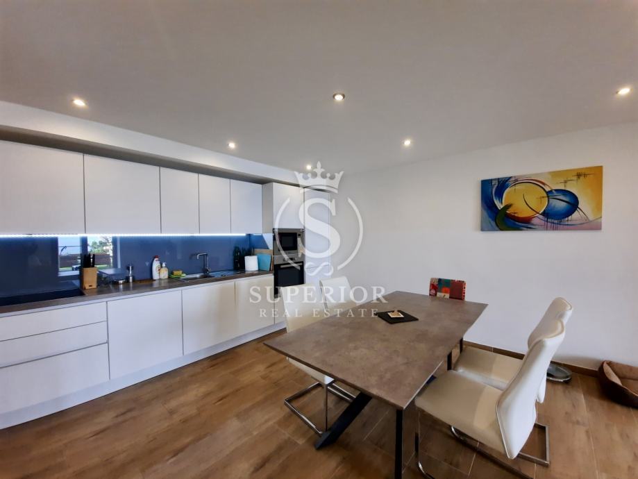 ✦ Raspored: open space kuhinja + blagovaonica + dnevni boravak; 2 spavaće sobe (jedna s izlazom na terasu); kupaonica s walk-in tušem; zaseban WC; izba