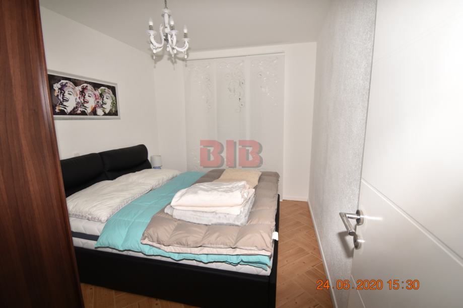 Stan se sastoji od hodnika,kuhinje sa dnevnim boravkom,spavaće sobe,kupaonice i balkona na II katu,te 2 spavaće sobe,predsoblja i kupaonice u potkrovlju.Stan ima pripadajući parking
