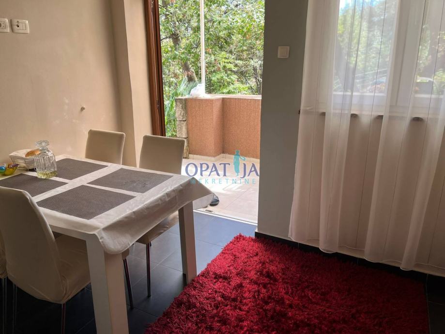 U srcu Lovrana nudimo izvrstan stan na atraktivnoj lokaciji unutar austrougarske vile, s garažom i parkirnim mjestom. Stan se sastoji od dnevnog boravka, spavaće sobe, kupaonice, ostave i kuhinje s izlazom na terasu. Nalazi se u visokom prizemlju. Stan je dobro održavan, dobro opremljen i namješten te se iznajmljuje u trenutnom stanju.