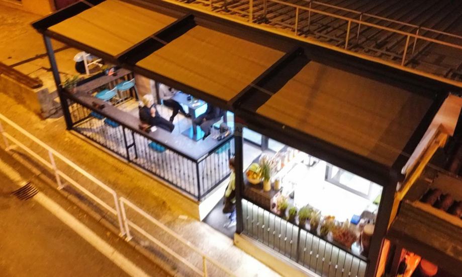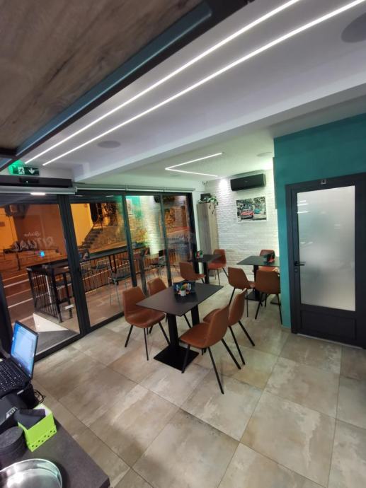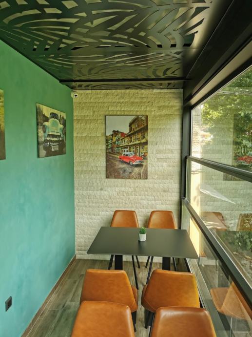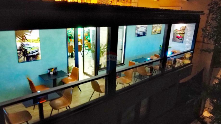 Na katu, a u nivou sa cestom nalazi se ugostiteljski obijekt - kafić, bistro od 40 m2 sa dvije terase ukupno 27 m2. Kompletno je opremljen i takav se prodaje