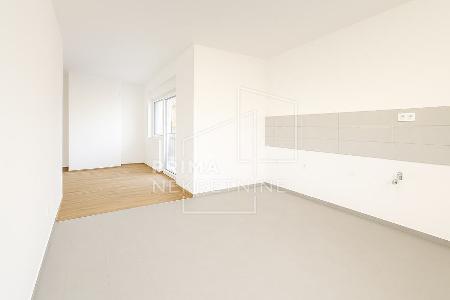 Sastoji se od ulaznog prostora, kupaonice, spavaće sobe, dnevnog boravka, kuhinje s blagovaonicom, lođe te pripadajućeg spremišta i parkirnog mjesta. Orijentacija stana je sjever–istok.