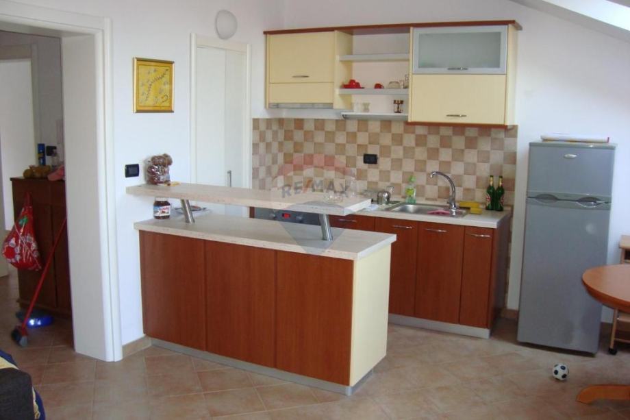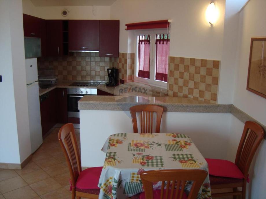 Prizemlje kuće sastoji se od velikog dnevnog boravka sa kuhinjom i blagovaonom, 3 spavaće sobe, 2 kupaone i 2 spremišta.