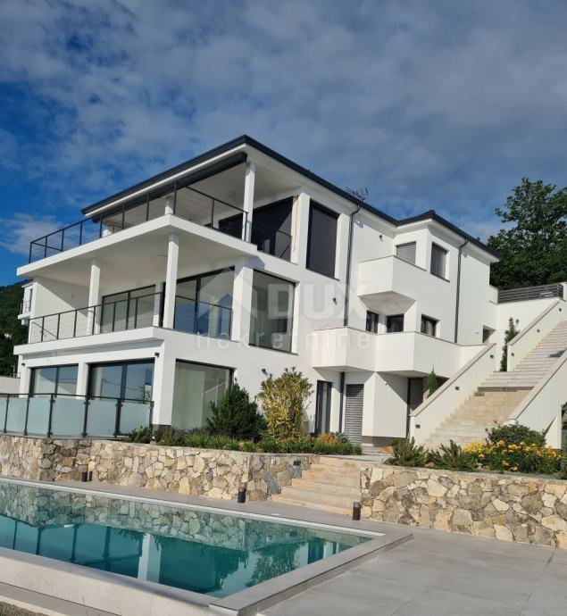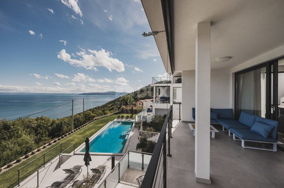 LOVRAN - LIGANJ - stan u vili s bazenom 120m2+terasa 26m2 s panoramskim pogledom na more + okoliš 163m2