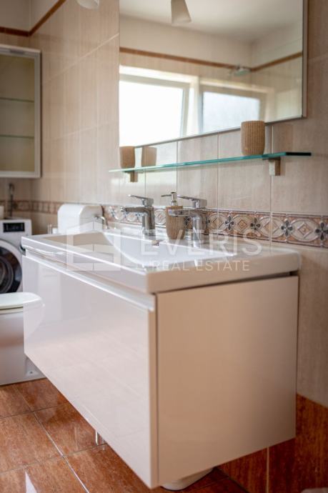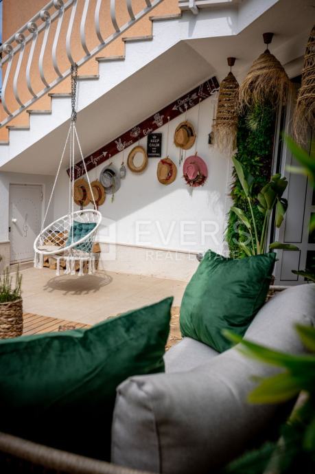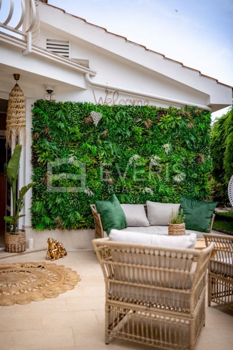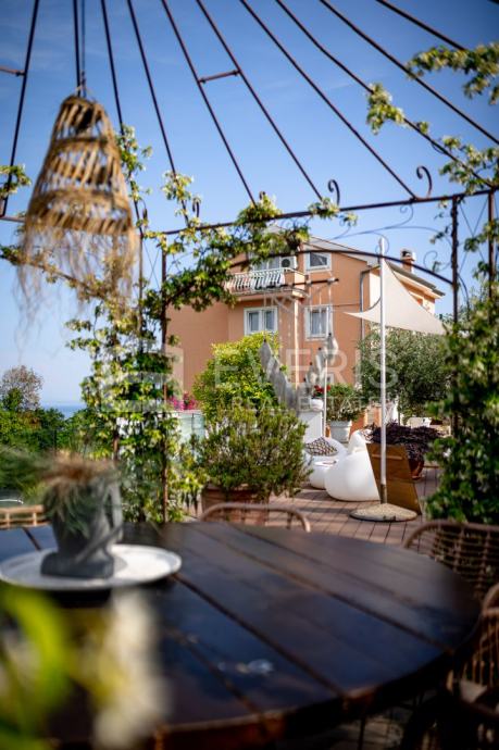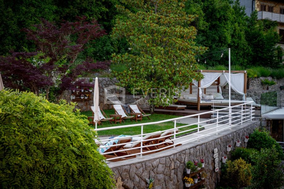 U prizemlju se nalazi recepcija s kuhinjom i blagovaonicom. Iz blagovaonice se izlazi na terasu s divnim pogledom na vrt.