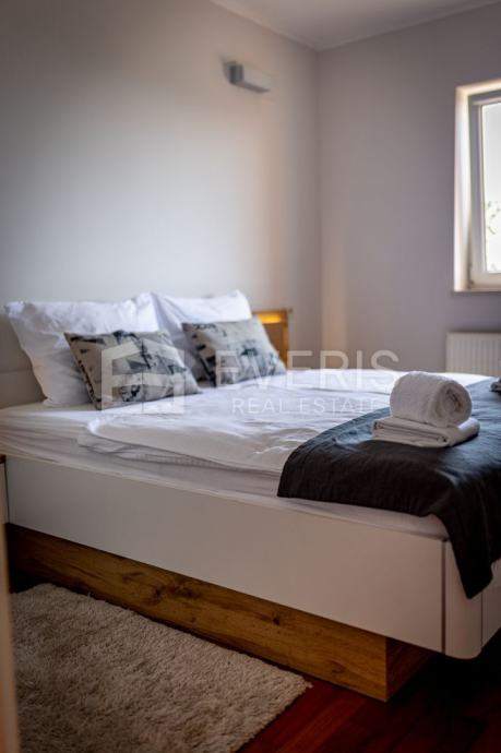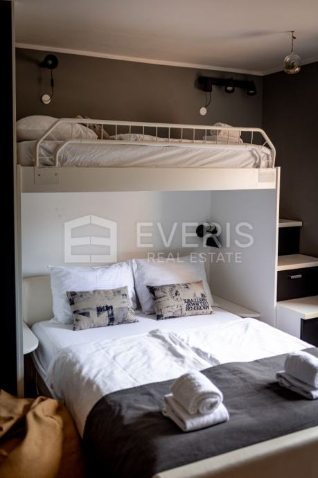Vila se sastoji od četiri etaže gdje je ukupno smještenih pet apartmana (trosobni, dvosobni, jednosobni ) a svi s dnevnim boravkom, kuhinjom i kupaonom.