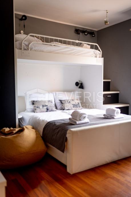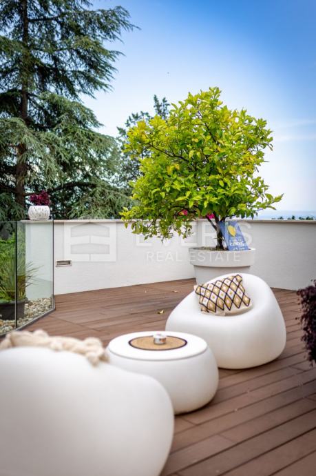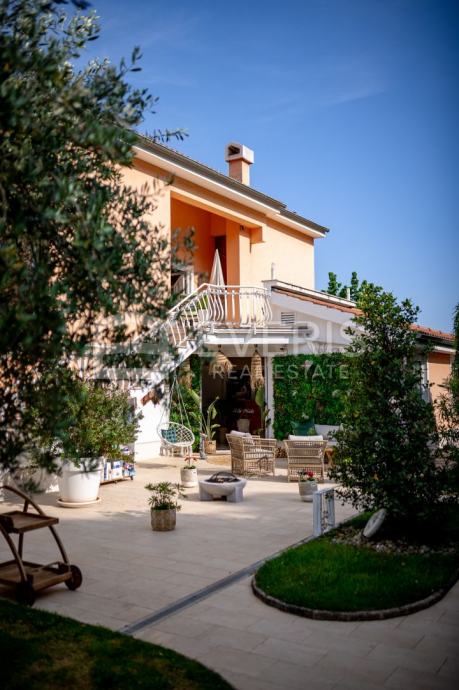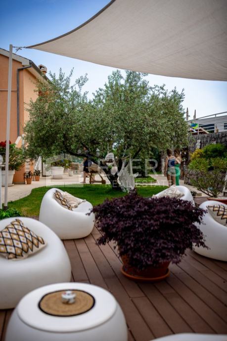 Što se tiče okućnice, na njoj je smješten grijani bazen, lounge bar, sunčalište te drugi popratni sadržaji.