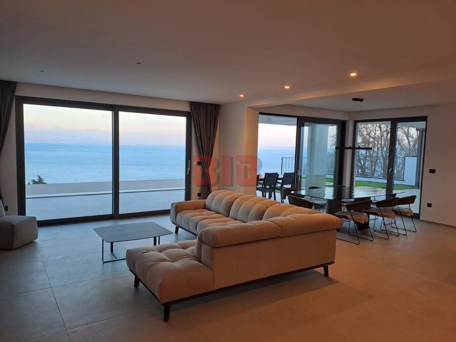 Ova prekrasna villa nalazi se na odličnoj lokaciji sa panoramskim pogledom na more i grad Lovran.Otvoreni pogled na more iz svih prostorija.