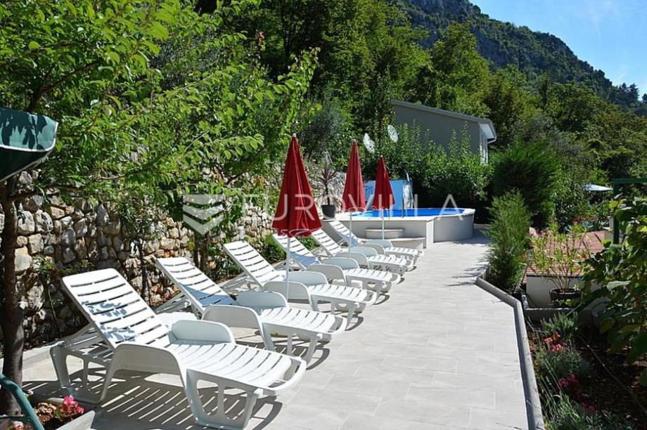 Kuća sa velikom okućnicom u prekrasnoj Medveji, nadomak jedne od najljepših plaža Kvarnera. Ova kuća idealna je prilika za sve koji traže odličnu investiciju u turizam ili pak privatnu oazu za odmor.Nekretnina se sastoji od četiri uređena jednosobna apartmana, svaki s vlastitim dnevnim boravkom, što omogućava maksimalnu udobnost i privatnost.Kuću okružuje velika, uređena okućnica koja nudi potpuni mir i privatnost, savršena za opuštanje i uživanje u prirodi.Na okućnici se nalazi sunčalište i bazen, idealni za ljetne dane bez potrebe da napuštate vlastiti dom.Lokacija je izvanredna - samo nekoliko minuta hoda do kristalno čiste plaže Medveja, poznate po ljepoti i čistoći mora.Savršeno za turistički najam - objekt je spreman za rad, s već uhodanim kapacitetima i odličnim potencijalom za povrat investicije.Za sve dodatne informacije slobodno nas kontaktirajte....