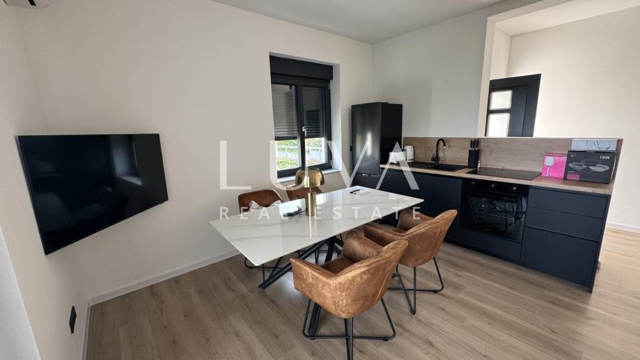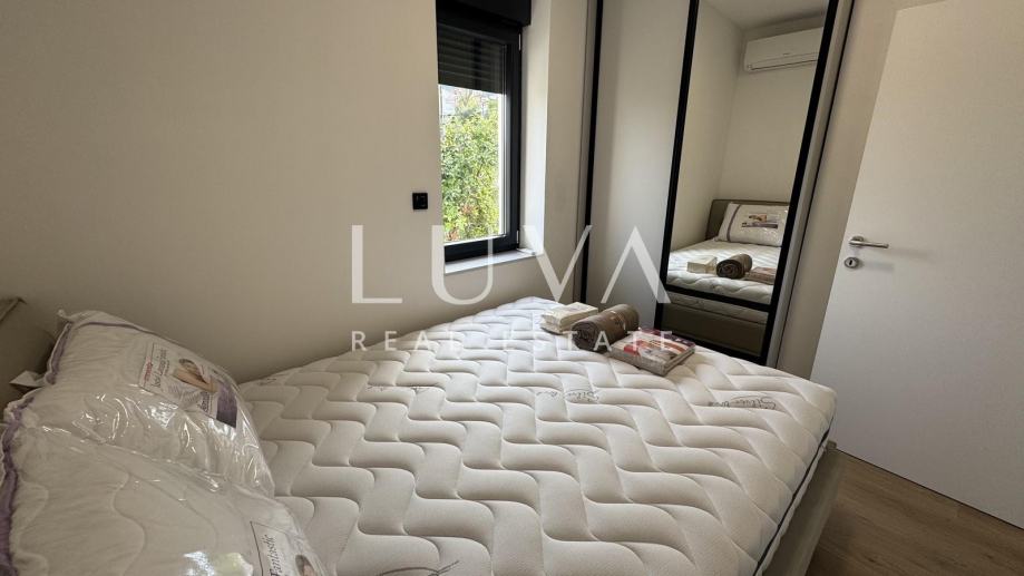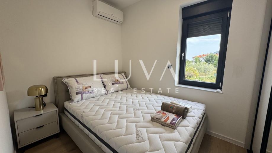 Veličina stana je 60m2. Stan se sastoji od 1 spavaće sobe, blagovaonice s kuhinjom i prostranog dnevnog boravka s izlazom na terasu. Uz stan dolazi jedno parking mjesto.