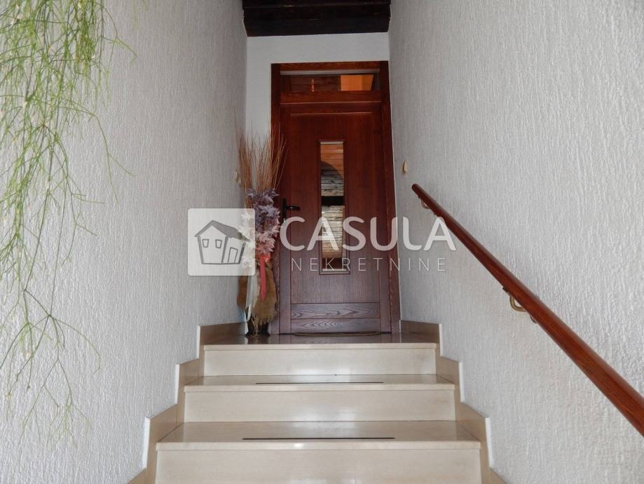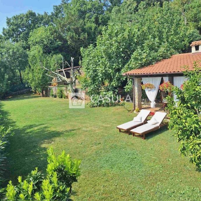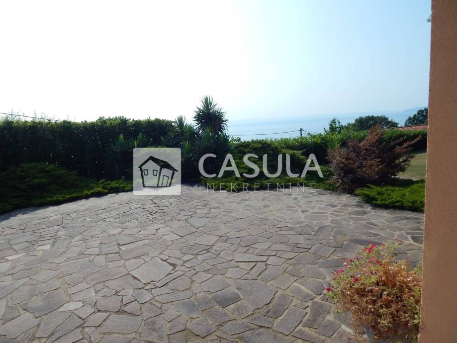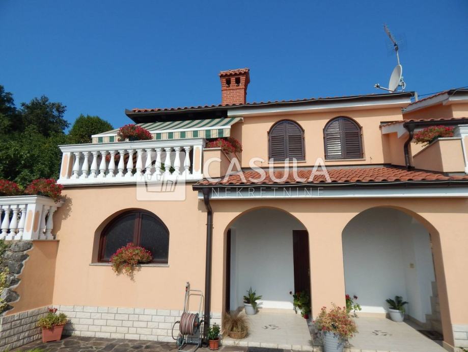 LOVRAN, prekrasna obiteljska kuća s velikom uređenom okućnicom. Na terenu postoji mogućnost izgradnje još jedne kuće. Kuća je vrlo lijepo uređena i održavana.Sastoji se od garaže, konobe, kotlovnice a stambeni dio čine tri sobe, dvije kupaonice te veliki dnevni boravak povezan s kuhinjom i blagovaonom.Kuća ima dva velika balkona, veliku natkrivenu terasu roštilj te više parkirnih mjesta. Grijanje centralno na lož ulje. Prekrasan pogled na more.