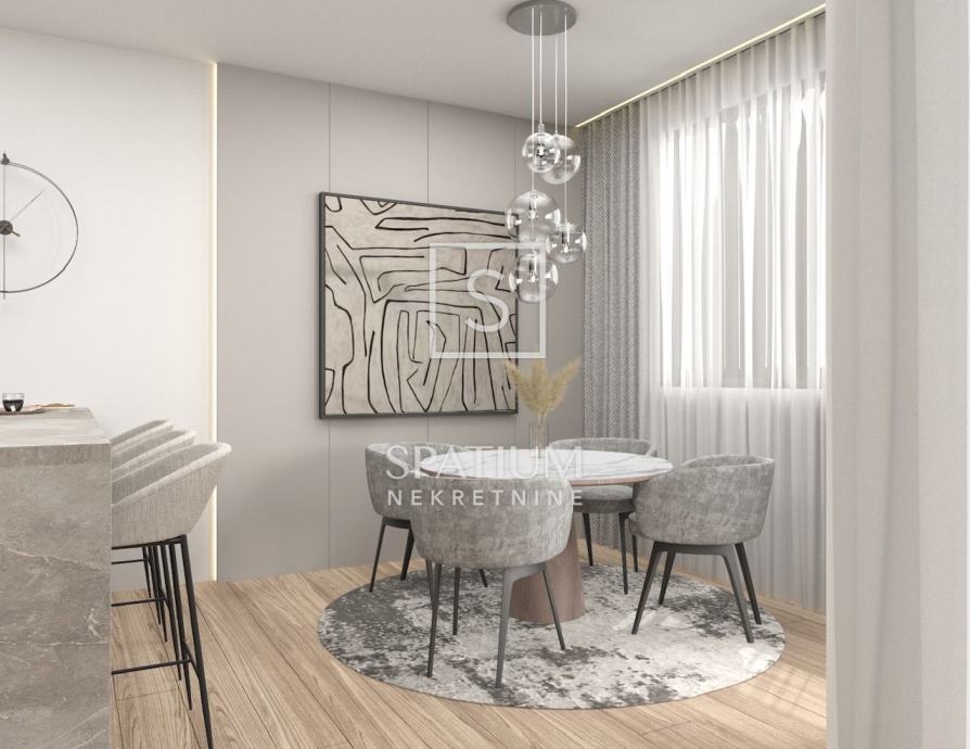 Kvalitetna gradnja, vrhunski materijali i završna obrada jamac su ugodnog stanovanja u ovoj nekretnini (visokokvalitetna aluminijska stolarija s troslojnim staklom, keramika i sanitarije najviše klase, klima uređaji, podno grijanje i dizalica topline, staklene ograde).