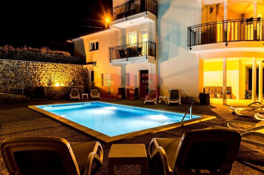 Vila se sastoji od 2 velika trosobna stana na I i II katu,te jednim manjim apartmanom,konobe sa kaminom,još jedne prostorije koja je pripremljena za jacuzzi i saunu,koji se nalaze u prizemlju,te duple garaže.