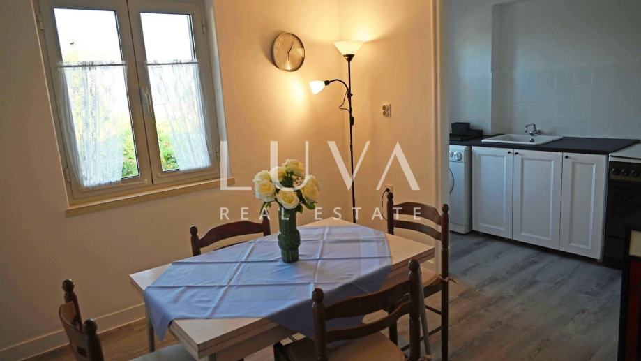 Nalazi se na prvom katu kuće s ukupno dva stana, a sastoji se od pet soba, kuhinje i blagovaonice, kupaonice i hodnika ukupne zatvorene površine 95,67m2.