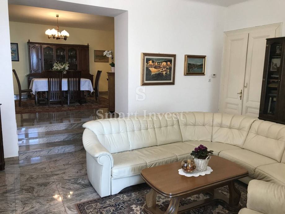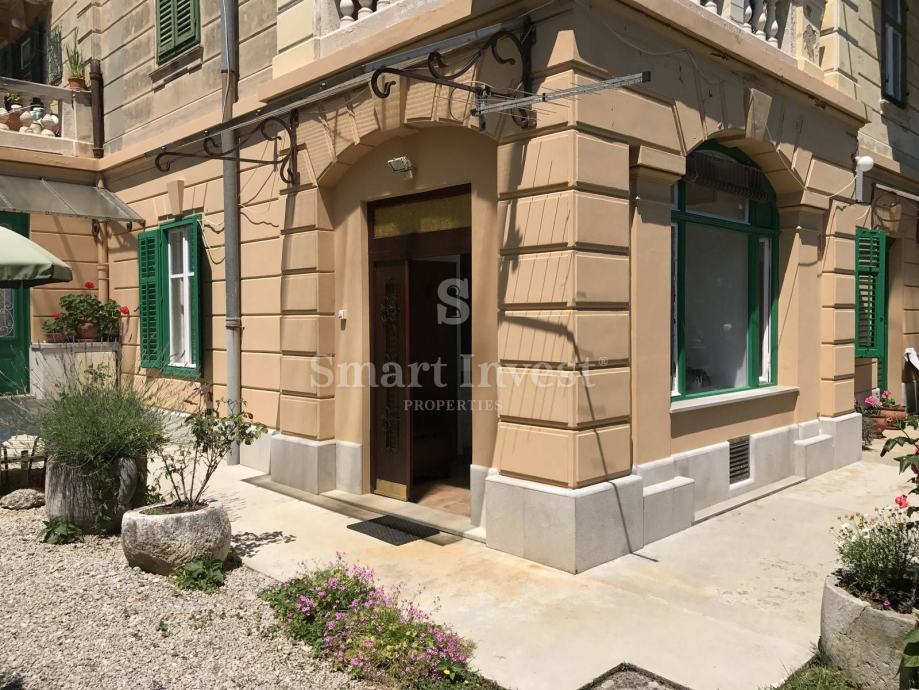 Stan ukupne površine 130 m² smješten je u prizemlju elegantne stare vile te odiše autentičnim primorskim ugođajem. Sastoji se od prostranog dnevnog boravka, kuhinje s blagovaonicom, tri komforne spavaće sobe te dvije kupaonice, pružajući idealan raspored za ugodan obiteljski život ili luksuzni odmor.