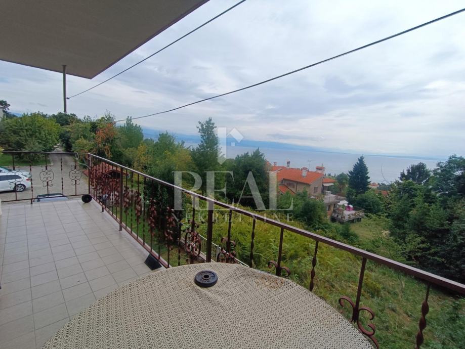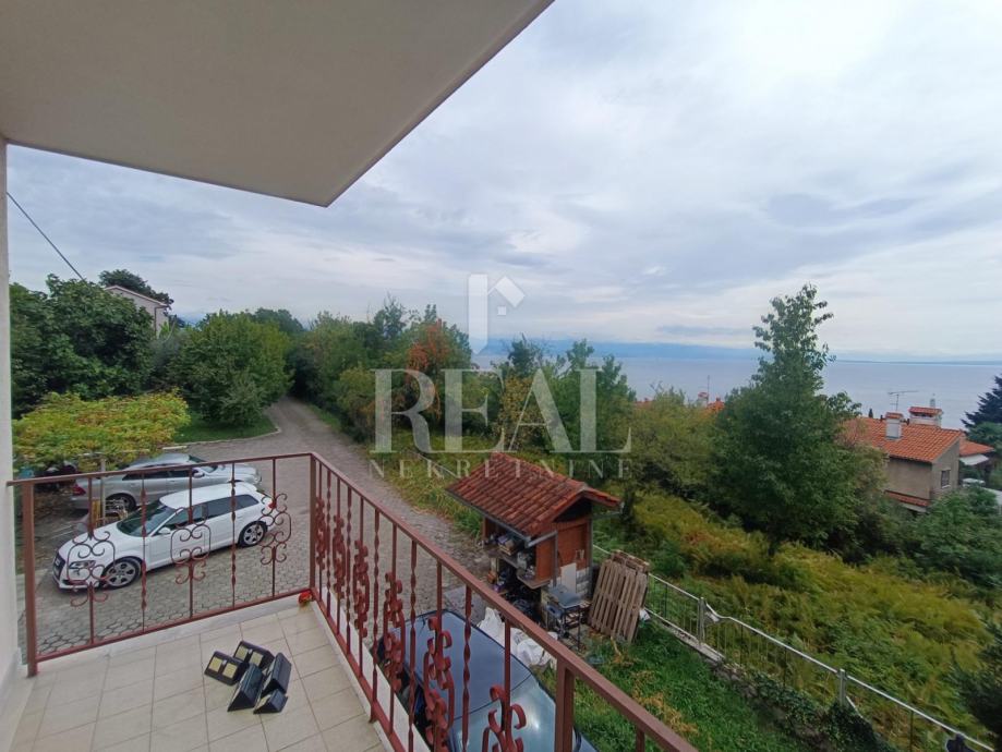 LOVRAN - ovaj prostrani, trosobni stan, dnevni boravak s prekrasnim pogledom, parkingom i okućnicom, smješten je na prvom katu uredne kuće, u mirnom okruženju.