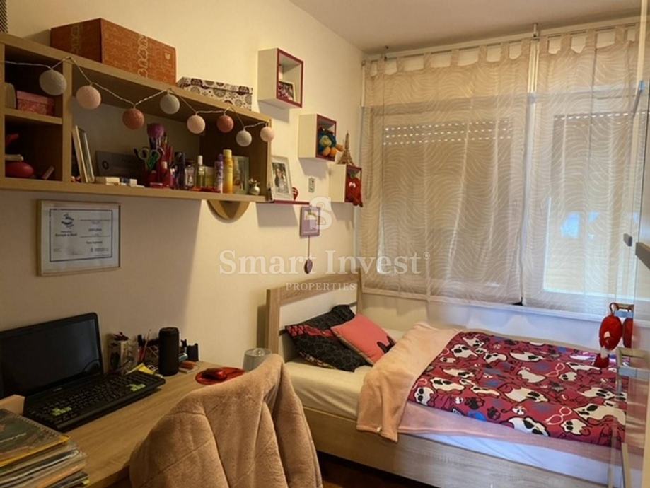 Stan se nalazi na 4.katu te se sastoji od dnevnog boravka, kuhinje s blagovaonicom, dvije spavaće sobe, kupaonice te balkona s kojeg se pruža otvoren pogled na more.