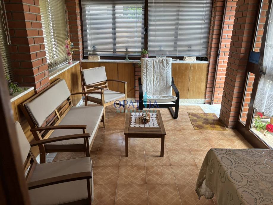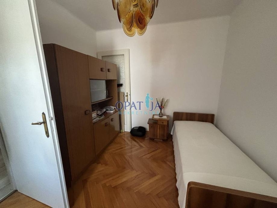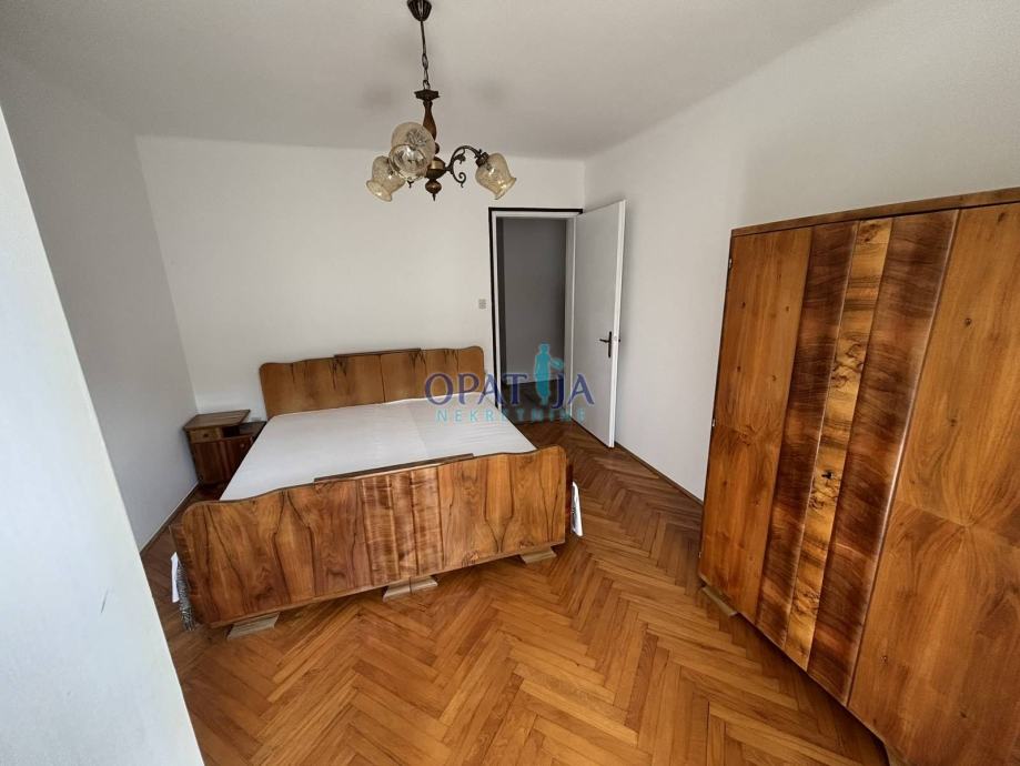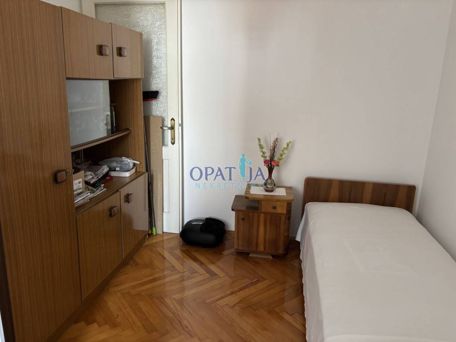 LOVRAN - Nedaleko od centra i svih bitnih sadržaja, prodaje se stan koji se sastoji od kuhinje i blagovaonice, pet soba, kupaonice, hodnika ( ukupne površine 95.67 m2 ) i pripatka dva balkona, verande, terase i stepenica, sveukupne površine 168.72 m2 ( uračunati koeficijenti : 138.21 m2 ). Stanu u vlasništvo pripada i dio okućnice ( parkirna mjesta i vrt ).