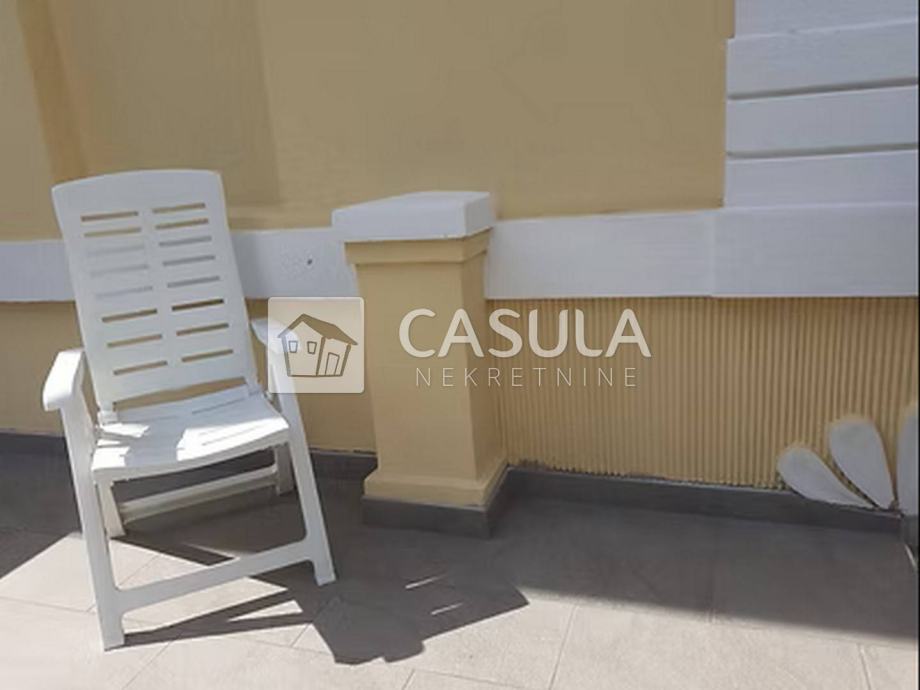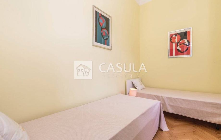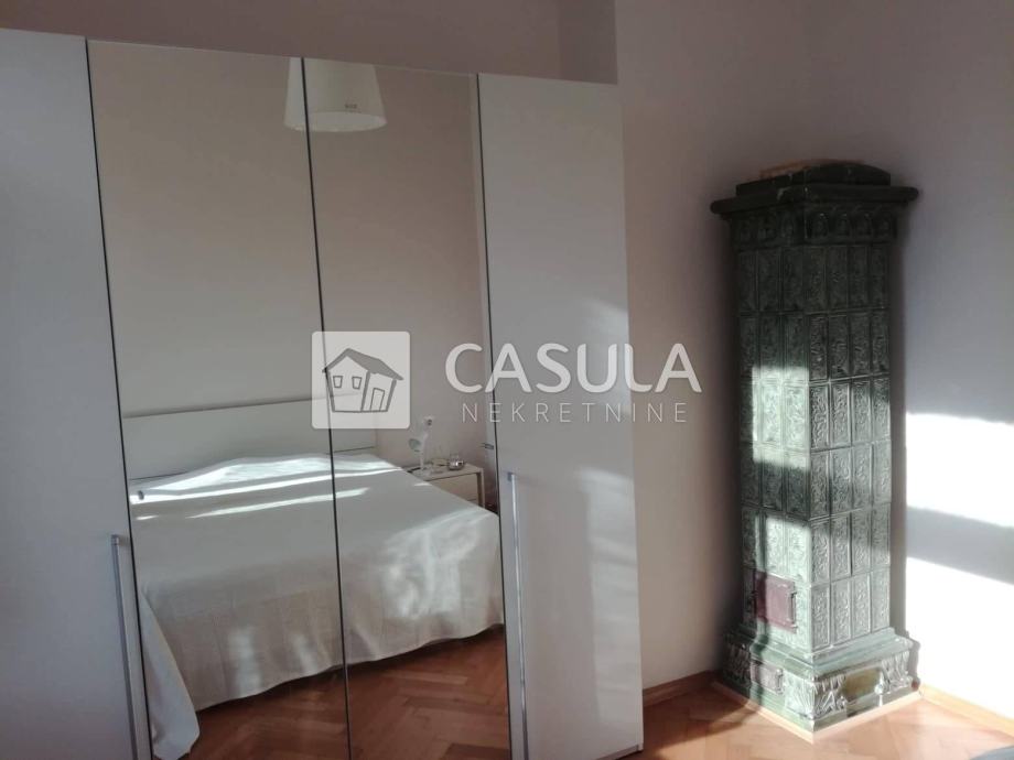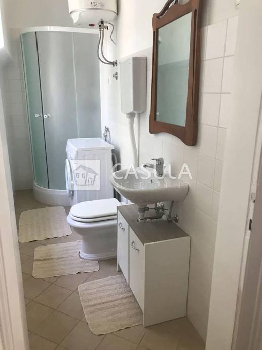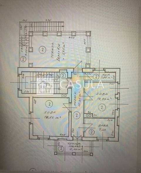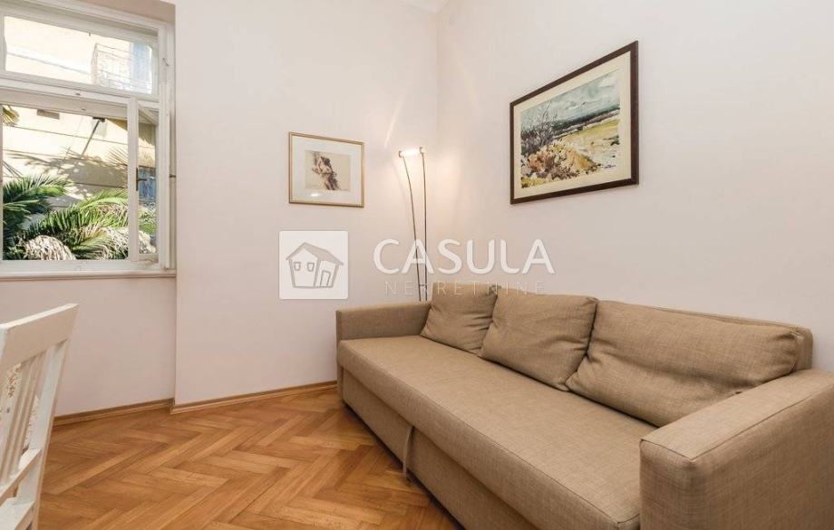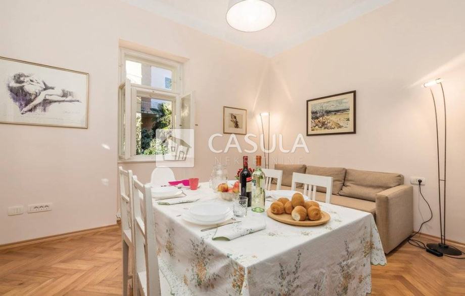 LOVRAN,Ekskluzivna prodaja. Na samo 50 m od mora smjestila se ova predivna povijesna vila sa samo dva stana. Prodajemo stan na 1 katu i dijelu potkrovlja. Stan se sastoji od dvije spavaće sobe, kuhinje, kupaone, dnevnog boravka i velike terase ukupne površine 85 m2 ,Terasa ima površinu 25 m2 ali je pri izračunu kvadrature korišten koeficijent od 0,25. Stanu pripada i prostorija na visokom potkrovlju površine 30 m2 u kojem je smještena soba s tri ležaja (jedan bračni krevet i jedan krevet za jednu osobu) i manje kupatilo. Uz kuću nalazi se 100 m2 terena kao i zemljište na posebnoj katastarskoj čestici površine 240 m2 idealno za parking ili izgradnju bazena. Stan je u odličnom stanju. Pozicija je vrhunska , u centru a opet izolirano od buke. Velika prednost lokacija u blizini mora i parking za više automobila.