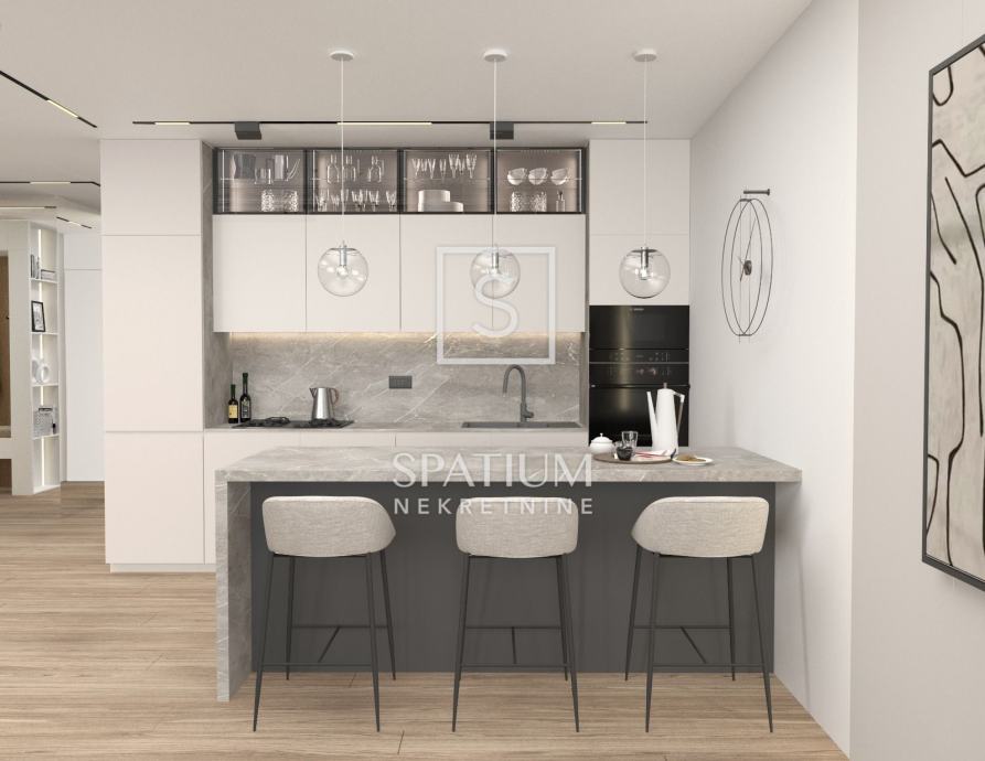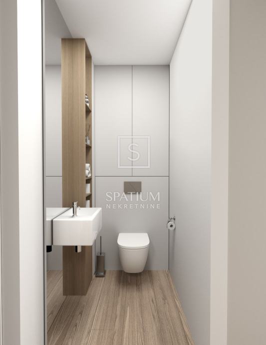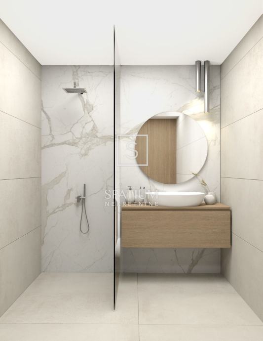 Kvalitetna gradnja, vrhunski materijali i završna obrada jamac su ugodnog stanovanja u ovoj nekretnini (visokokvalitetna aluminijska stolarija s troslojnim staklom, keramika i sanitarije najviše klase, klima uređaji, podno grijanje i dizalica topline, staklene ograde).