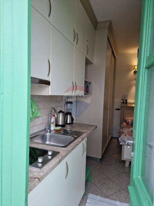 U neposrednoj blizini obale mora prodaje se maleni studio -apartman,koji se sastoji od spavaće sobe,kuhinjice i kupatila s toaletom-