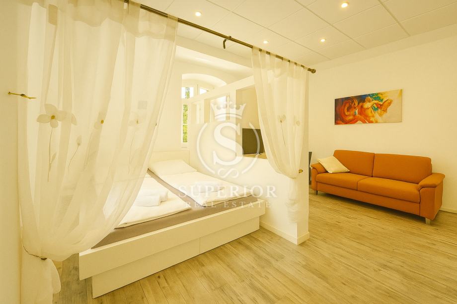 U srcu šarmantnog Lovrana, u povijesnoj vili iz doba Austro-Ugarske, smjestio se studio apartman koji nosi duh prošlih vremena i udobnost modernog života. Nalazi se u prvom redu do mora, svega nekoliko koraka od kristalno čiste plaže Peharovo – jedne od najljepših na čitavoj obali.