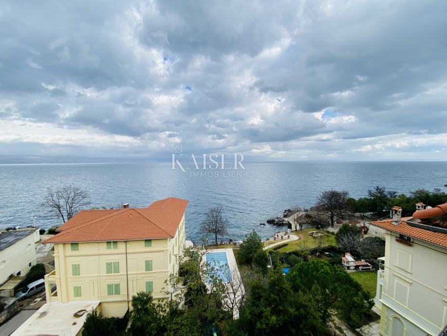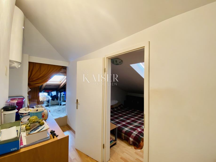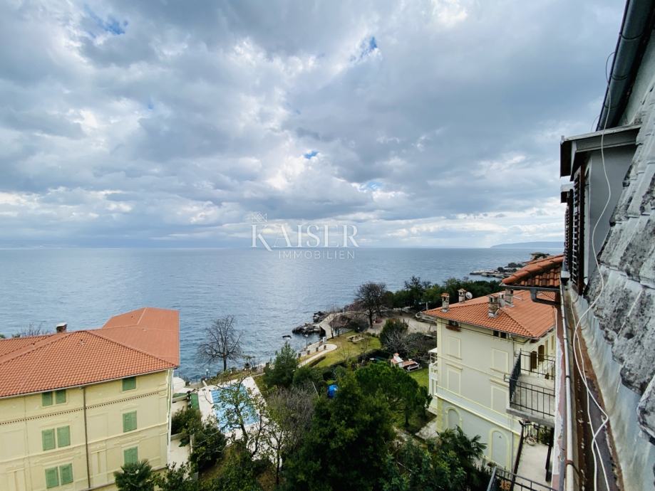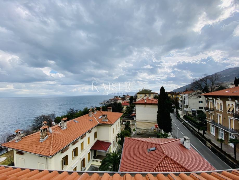 Agencija za nekretnine Kaiser Immobilien iz Opatije izdvaja iz svoje bogate ponude prostran stan smješten u visokom potkrovlju povijesne stambene zgrade u samom centru Lovrana.