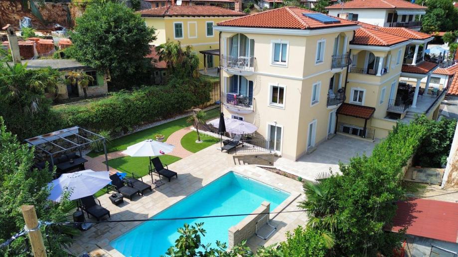 LOVRAN, UNIKATNA VILA S APARTMANIMA I LIJEPO UREĐENOM OKUĆNICOM S BAZENOM.
