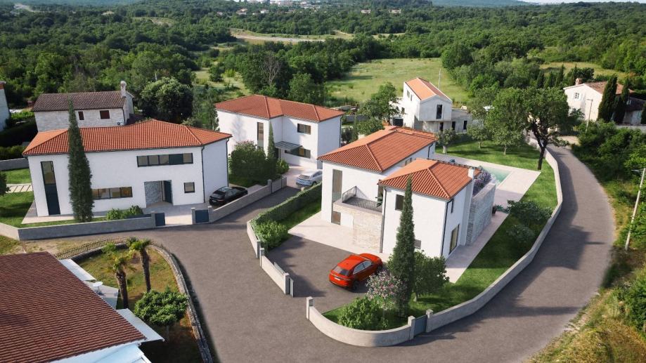 Vila u izgradnji od 169,30 m2 sa bazenom od 35 m2 prodaje se. U prizemlju vile nalazi se prostrani dnevni boravak sa velikim staklenim stijenama sa kuhinjom i blagovaonom, spavaća soba, wc i spremište. Iz dnevnog boravka izlazi se na natkrivenu terasu gdje se nalazi bazen koji pruža pogled na zelenilo,.Prvi kat vile sastoji se od dvije spavaće sobe od kojih jedna ima vlastitu moderno opremljenu kupaonu, saunu i terasu sa pogledom na bazen.