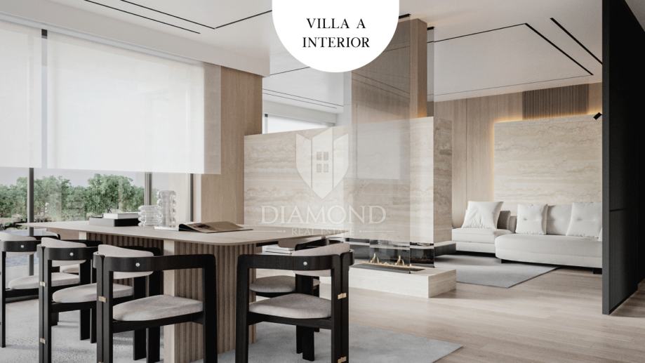 Vila je smještena na zemljištu površine 318 m2. Ukupna površina vile iznosi 249.23 m2 a proteže se na dvije etaže. U prizemlju ove prekrasne vile nalazi se dnevni boravak sa kuhinjom i blagovaonicom otvorenog tipa i kupaonica. Iz dnevnog boravka se izlazi na natkrivenu terasu sa ljetnom kuhinjom sa koje se pristupa uređenoj okućnici na kojoj je smješten prekrasni bazen sa sunčalištem, dio za odmor i uživanje te dva parkirna mjesta. Na kat se pristupa sa luksuznih unutarnjih stepenica gdje su smještene 3 spavaće sobe, 2 kuponice, 3 terase i hodnika.
