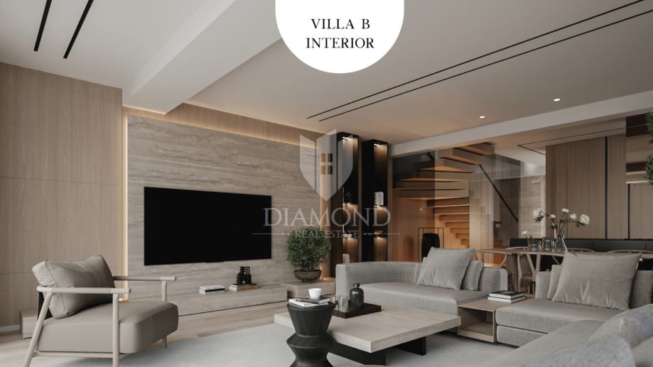 Vila je smještena na zemljištu površine 357.33 m2. Ukupna površina vile iznosi 211.95 m2 a proteže se na dvije etaže. U prizemlju ove prekrasne vile nalazi se dnevni boravak sa kuhinjom i blagovaonicom otvorenog tipa, spavaća soba i kupaonica. Iz dnevnog boravka se izlazi na natkrivenu terasu sa ljetnom kuhinjom sa koje se pristupa uređenoj okućnici na kojoj je smješten prekrasni bazen sa sunčalištem, dio za odmor i uživanje te dva parkirna mjesta. Na kat se pristupa sa luksuznih unutarnjih stepenica gdje su smještene 2 spavaće sobe, 2 kupaonice, terasa i hodnik.