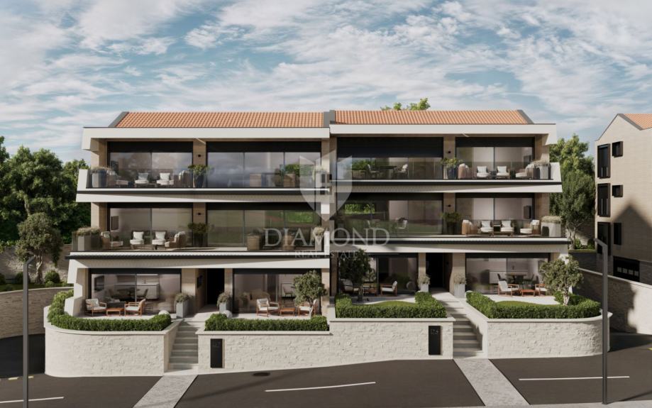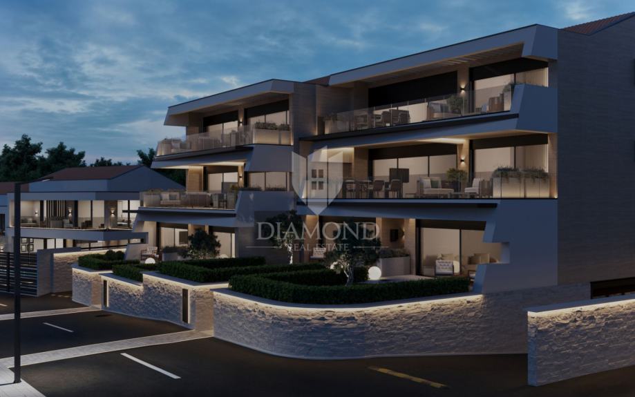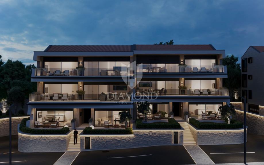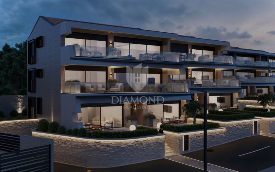 Apartman je smješten na 1. katu moderne zgrade. Ukupna površina apartmana iznosi 126.05 m2. Sastoji se od dnevnog boravka s kuhinjom i blagovaonicom otvorenog tipa, 2 spavaće sobe i kupaonice. Iz dnevnog boravka se izlazi na natkrivenu terasu idealnu za druženje i uživanje. Apartmanu pripada i parkirno mjesto.