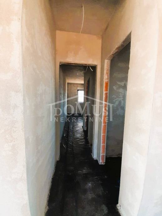 Podne obloge u dnevnom prostoru, hodnicima i kupaonicama su keramičke pločice, dok je na stubištu postavljen kamen. U spavaćim sobama su troslojni parketi. Fasada kuće je marke STO, debljine 10 cm. Obloga sunčališta bazena i terasa je keramika, dok iznad dijela bazena nalazi se ALU pergola. Kuća ima ljetnu kuhinju s roštiljem, natkriveni parking te ALU ogradu na ogradnim zidovima, dok dvorišna klizna vrata imaju pogon na elektro motor.