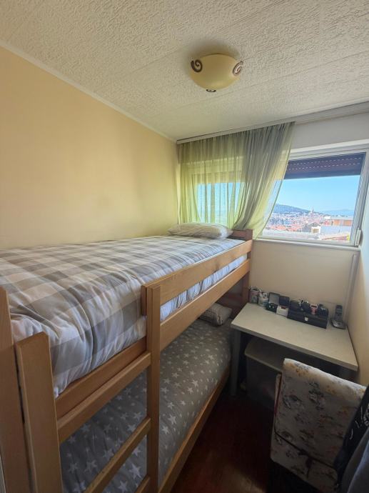 Smješten na šestom katu stambene zgrade s liftom, stan je iznimno osunčan i ugodan za boravak tijekom cijelog dana. Sastoji se od dvije spavaće sobe, jedne veće i jedne manje, kuhinje povezane s dnevnim boravkom, kupaonice te hodnika. Funkcionalan raspored omogućava maksimalnu iskoristivost prostora i prilagodbu različitim potrebama budućih vlasnika.