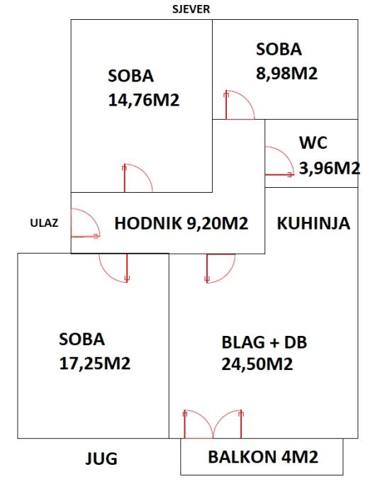 Agencija Fortuna posreduje u prodaji trosobnog komfornog stana površine 80m2 u ulici Kralja Zvonimira, na drugom katu, orijentiran sjever i jug.