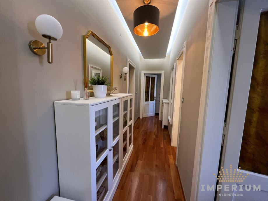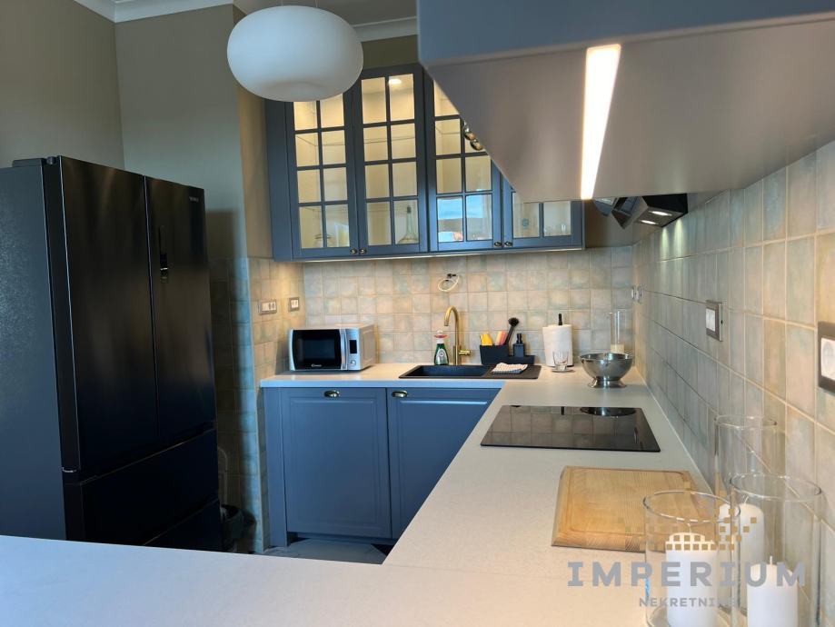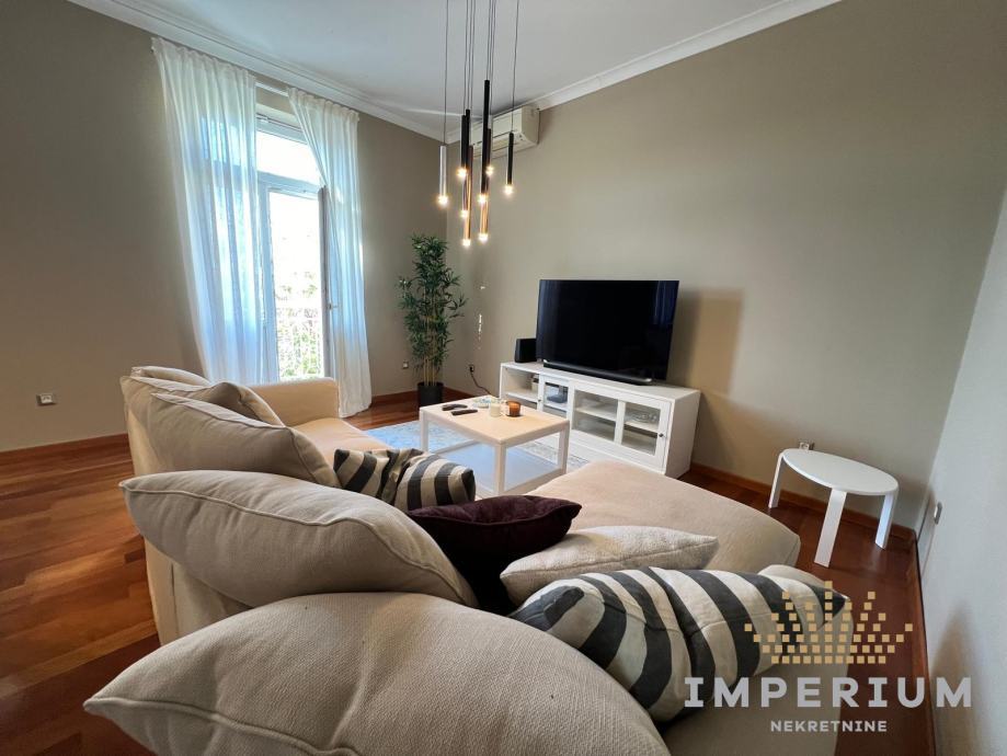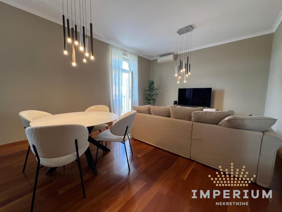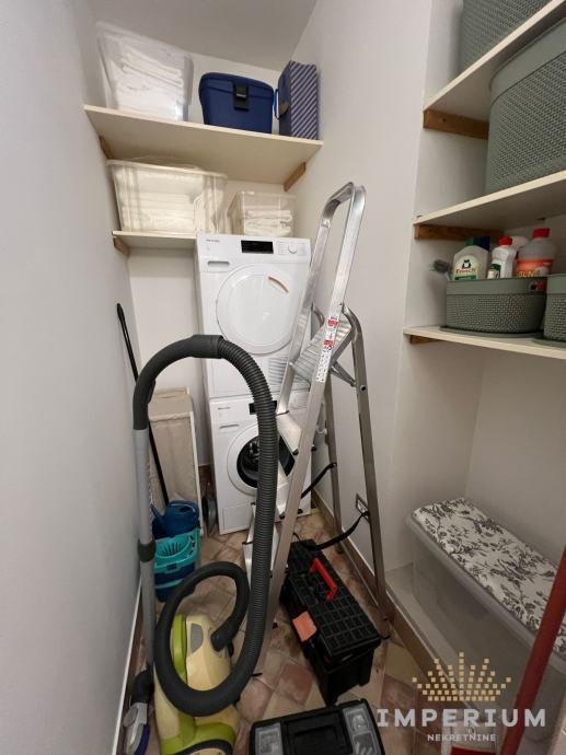Stan se nalazi na 2. katu stambene zgrade. Vrlo je komforan, svijetao i ugodan za život. Novouređen, kompletno opremljen (perilica i sušilica rublja, mikrovalna pećnica, perilica suđa, 4 klima uređaja, radijatori na struju), prvo useljenje nakon renovacije.