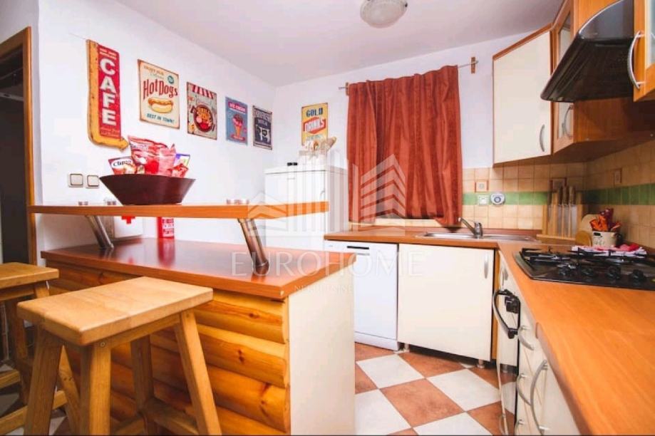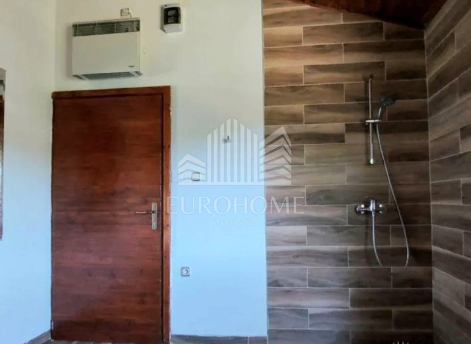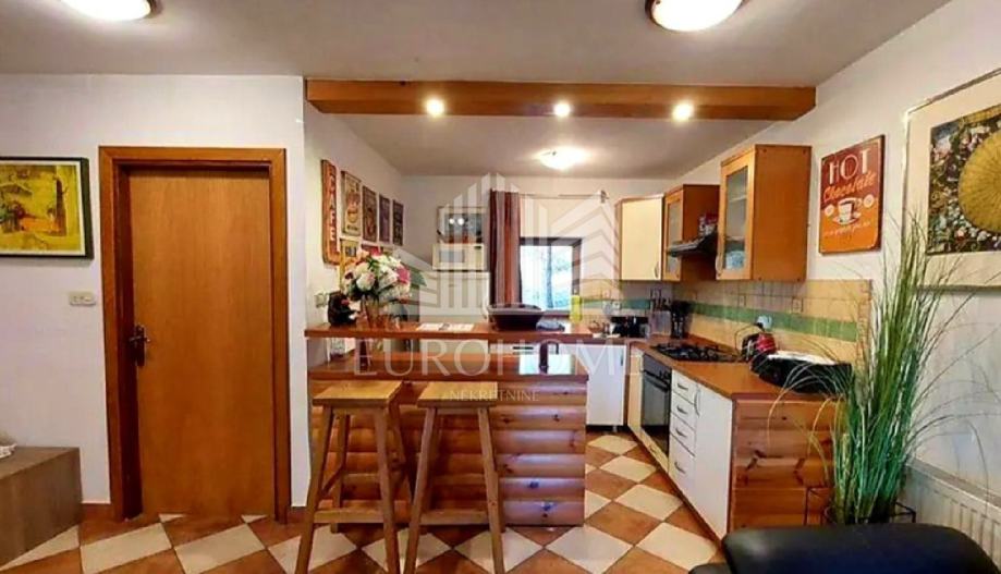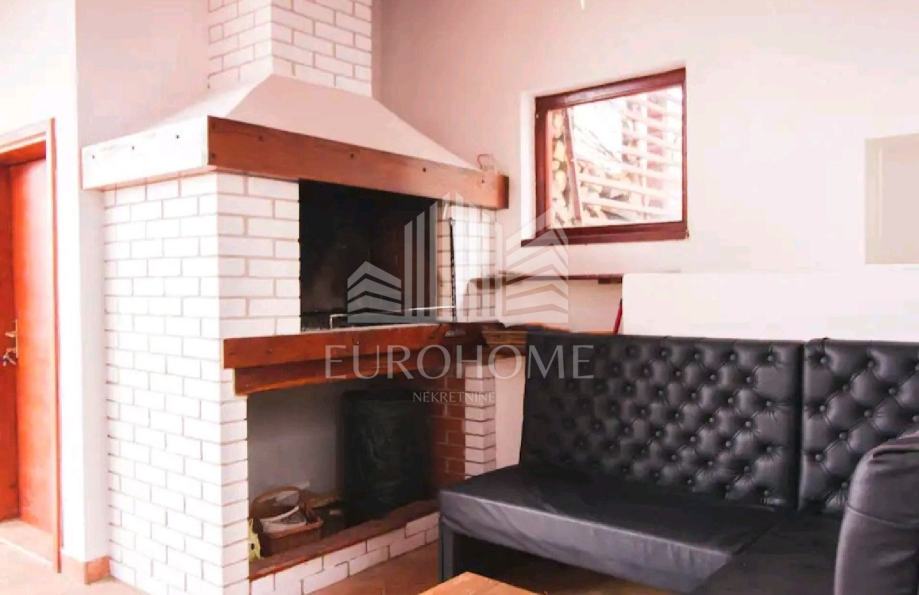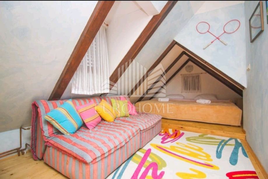 Kuća je građena na tri etaže i izvana obložena drvenom fasadom s poluoblicama, što joj daje autentičan, rustikalni karakter. Unutrašnjost odiše toplinom i funkcionalnošću, a svaki detalj pažljivo je odabran kako bi pružio maksimalnu udobnost i opuštanje.