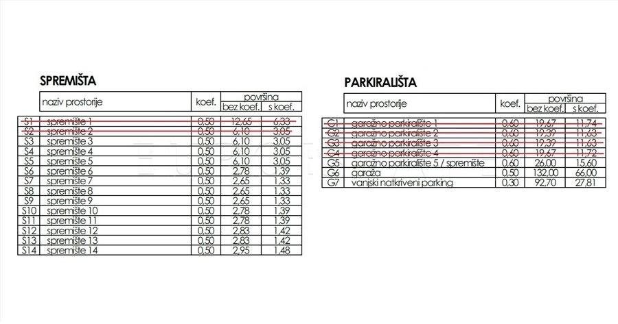 - neto korisne površine spremišta i parkirnih mjesta nalaze se u prilogu (fotografijama) oglasa,