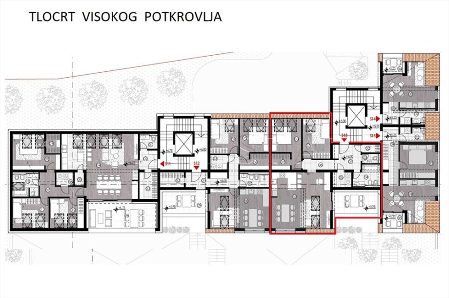 - kupac može odabrati parkirno mjesto površine 16,50 m2 u garaži ili natkriveno parkirno mjesto površine 15,45 m2,