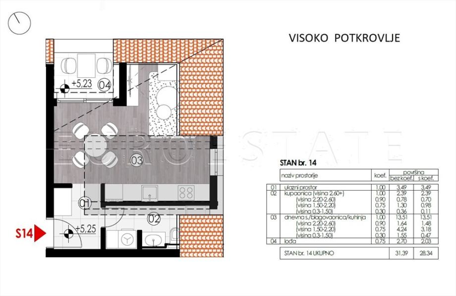 Ludbreg: NOVOGRADNJA, GARSONIJERA, 28.34 m2, visoko potkrovlje (prodaja)