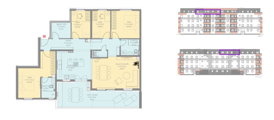 • stambena zgrada raspoređena je kroz prizemlje, 3 kata i nepotpuna etaža (penthousevi) i sastoji se od ukupno 36 stambenih jedinica.