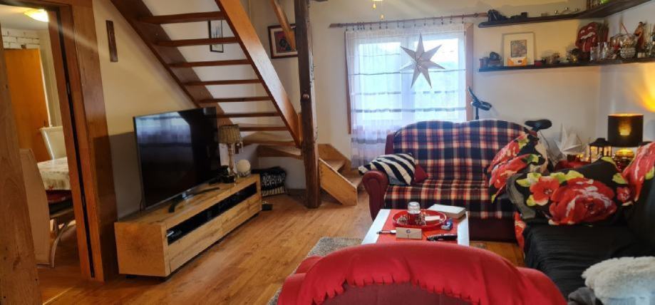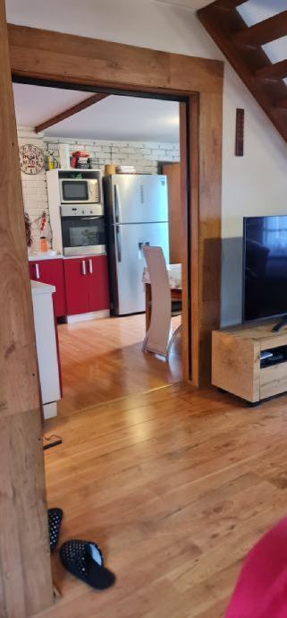 U prizemlju se nalazi veliki dnevni boravak ,odvojena kuhinja i veliki wc.