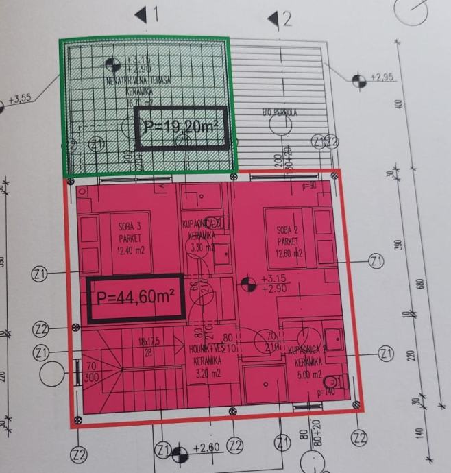 Jedna od spavaćih soba ima izlaz na veliku terasu površine 16,70m2.