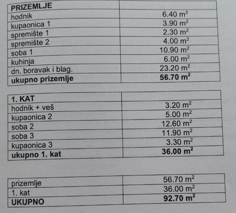 U prizemlju se nalazi ulazni hodnik, kuhinja i dnevni boravak, spavaća soba, kupaonica i dva spremišta.