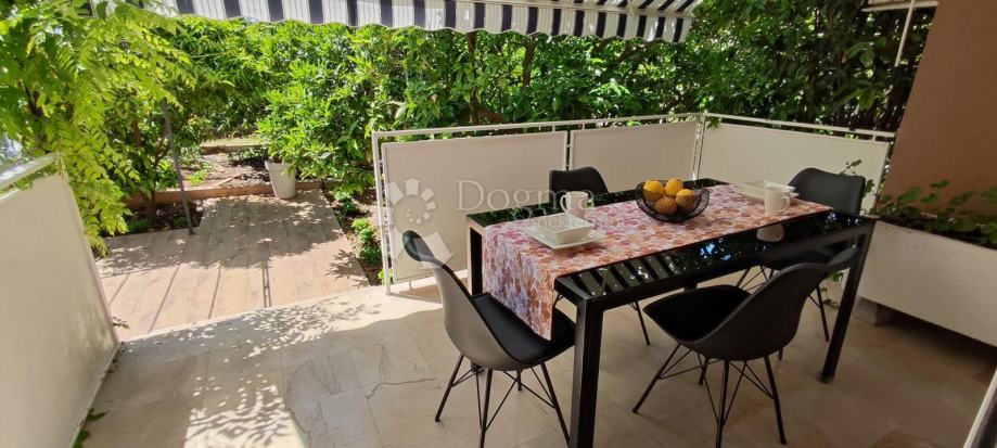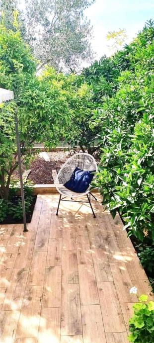 Stambeni dio ima 35,78 m2, loggia balkonskog tipa 10 m2, uređena terasa oko 20 m2. Dva kultivirana vrta ukupno 136 m2 s nasadima mandarina i cvjetnjakom, osigurano parkirno mjesto i malo spremište. Ukupna korisna vrijednost površina iznosi oko 55,47 m2.